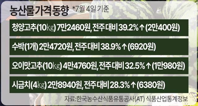 수박·고추값 1주일새 40% 폭등… 폭염에 농산물 가격 들썩