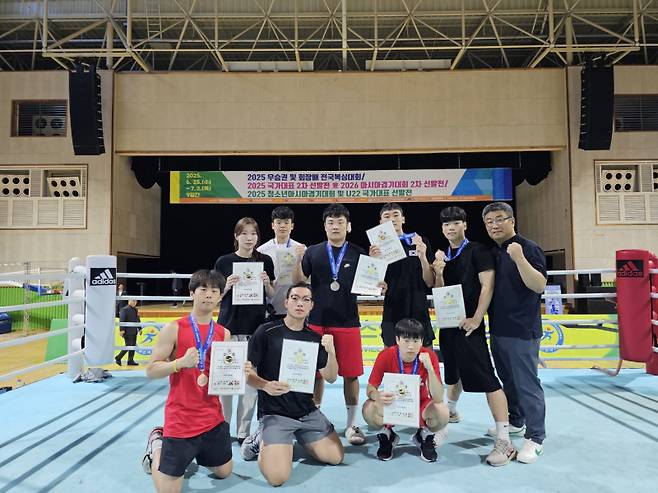 마산대학교 복싱부가 최근 충남 청양에서 열린 ‘U22 국가대표 선발전 겸 2025 회장배 전국복싱대회’에서 8명의 입상자와 함께 2명의 국가대표를 배출하며 복싱 명문으로서의 위상을 입증했다.