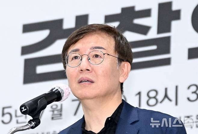 [광주=뉴시스] 김혜인 기자 = 한동수 변호사(전 대검찰청 감찰부장)가 7일 오후 광주 금남로 YMCA 무진관에서 열린 광주YMCA 제108차 시민논단을 통해 '검찰의 심장부에서'를 주제로 강연하고 있다. 2025.07.07. hyein0342@newsis.com