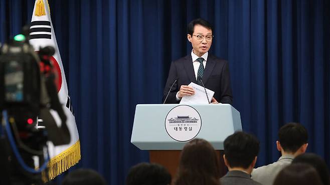 ▲ 이규연 홍보소통수석이 7일 용산 대통령실에서 인천 계양구 맨홀 사고 관련 이재명 대통령 지시사항 브리핑을 하고 있다.