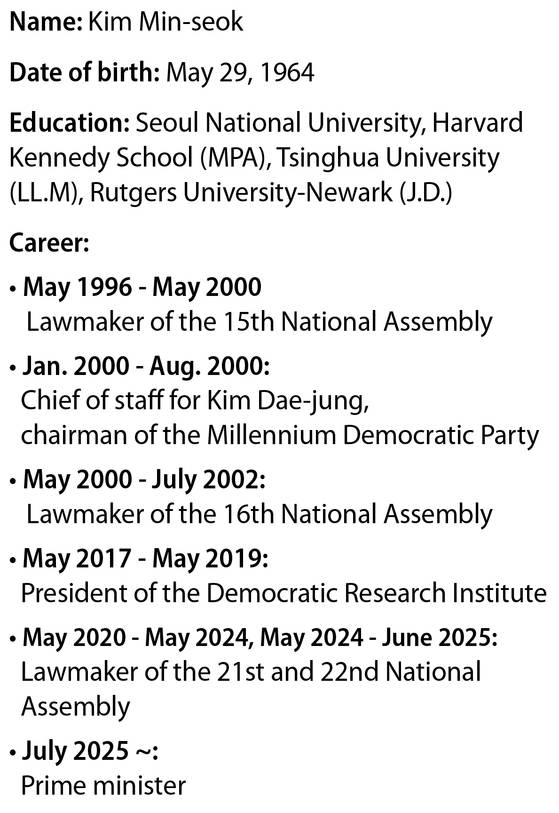 Kim Min-seok, a four-term liberal Democratic Party (DP) lawmaker and close ally of President Lee Jae Myung, formally became Korea's 49th prime minister last week.