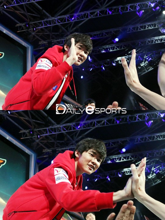 2014 롤 올스타전에 첫 출전한 '페이커' 이상혁, 우승과 함께 무대 앞으로 나가 팬들과 손뼉을 맞췄다.