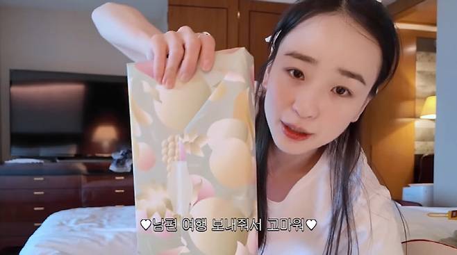 이 과정에서 손연재는 남편 선물인 예쁜 젤리를 공개하며 "남편 여행 보내줘서 고맙다"며 고마운 마음을 전했다. 이어 아들과의 커플티도 자랑, "나한테 맞겠다. 사이즈 좀 큰 걸로 샀다"며 웃었다.