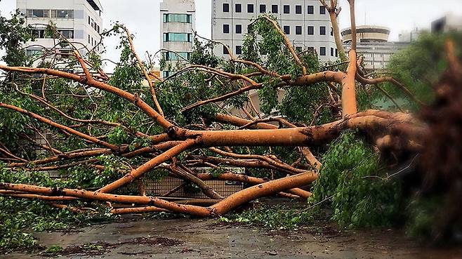 강풍에 쓰러진 가로수에 깔려 69살 과일 노점상이 숨졌고 정전으로 인공호흡기 작동이 멈춰 60살 환자가 목숨을 잃었습니다.