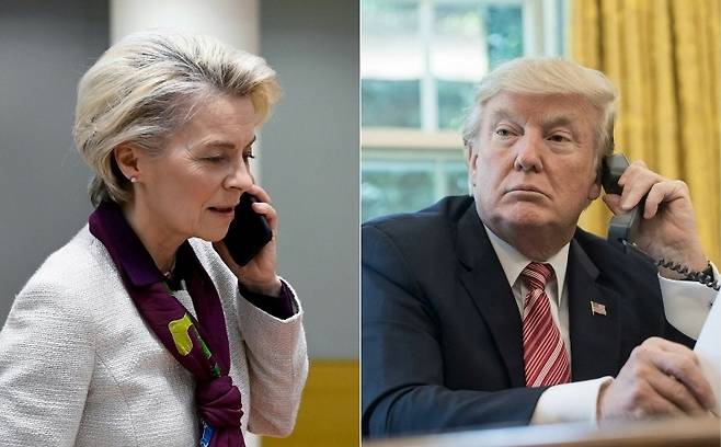 [우르줄라 폰데어라이엔 EU 집행위원장(왼쪽), 도널드 트럼프 미국 대통령 (AFP=연합뉴스 자료사진)]