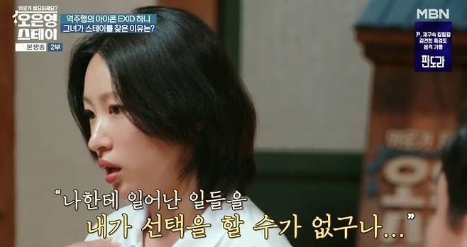 7일 MBN ‘오은영 스테이’에선 하니가 2기 참가자로 출연해 감춰온 고민을 전했다.