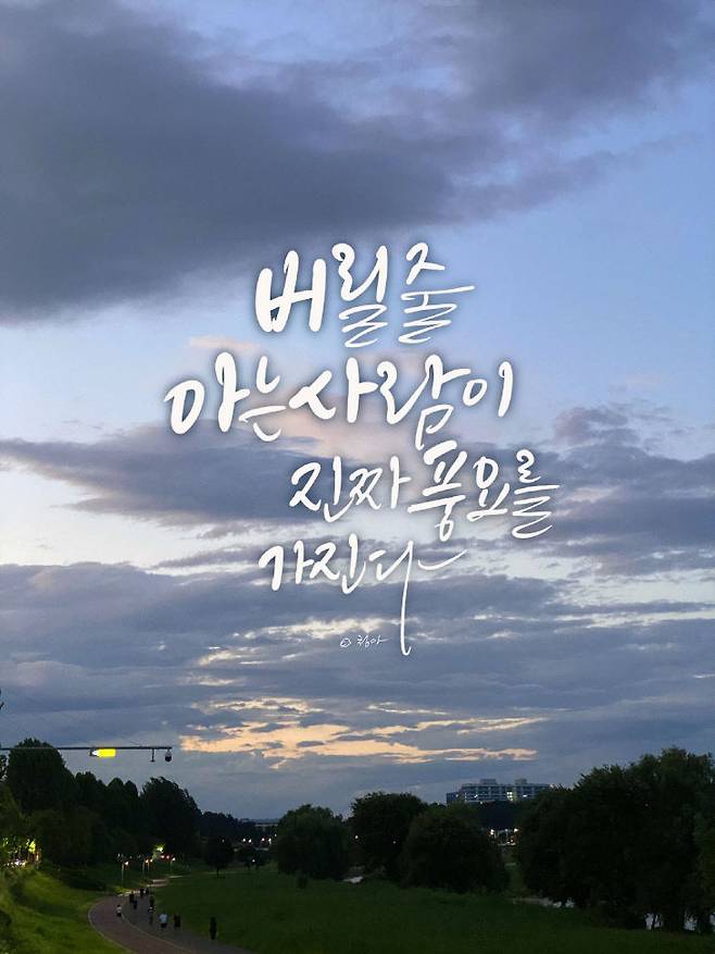 [아침을 여는 명언 캘리] 2025년 7월8일 화요일 김의화 2025. 7. 8. 00:00 음성으로 듣기 음성재생 설정 이동 통신망에서 음성 재생 시 데이터 요금이 발생할 수 있습니다. 글자 수 10,000자 초과 시 일부만 음성으로 제공합니다. 남성 여성 느림 보통 빠름 음성 재생하기 닫기 음성 재생 중지 번역 설정 번역beta Translated by kaka i 한국어 - English 영어 日本語 일본어 简体中文 중국어 Nederlands 네델란드어 Deutsch 독일어 Русский 러시아어 Malaysia 말레이시아어 বাঙ্গোল ভাষা 벵골어 tiếng Việt 베트남어 Español 스페인어 اللغة العربية 아랍어 Italiano 이탈리아어 bahasa Indonesia 인도네시아어 ภาษาไทย 태국어 Türkçe 튀르키에어 Português 포르투갈어 Français 프랑스어 हिन्दी 힌디어 닫기 번역중 Now in translation 글씨크기 조절하기 글자크기 설정 파란원을 좌우로 움직이시면 글자크기가 변경 됩니다. 가 매우 작은 폰트 작은 폰트 보통 폰트 큰 폰트 매우 큰 폰트 가 이 글자크기로 변경됩니다. (예시) 가장 빠른 뉴스가 있고 다양한 정보, 쌍방향 소통이 숨쉬는 다음뉴스를 만나보세요. 다음뉴스는 국내외 주요이슈와 실시간 속보, 문화생활 및 다양한 분야의 뉴스를 입체적으로 전달하고 있습니다. 닫기 인쇄하기 '버릴 줄 아는 사람이 진짜 풍요를 가진다. /글=법정스님·캘리그라피=손정숙 Copyright © 중도일보. 무단전재 및 재배포 금지.