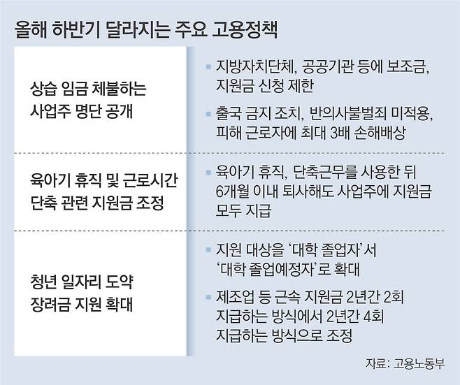 지난해 국회를 통과한 ‘근로기준법 개정안(상습 임금체불 근절법)’에 따라 고용부는 올해 10월 23일부터 상습적으로 임금을 체불한 사업주 명단을 공개한다. 체불 자료는 신용정보기관에 제공한다. 명단에 오르면 정부, 지방자치단체, 공공기관이 지원하는 보조금, 지원금을 못 받을 수 있다. 정부, 공공기관 등이 발주하는 공사에도 참여가 제한되거나 평가 감점을 받을 수 있다.