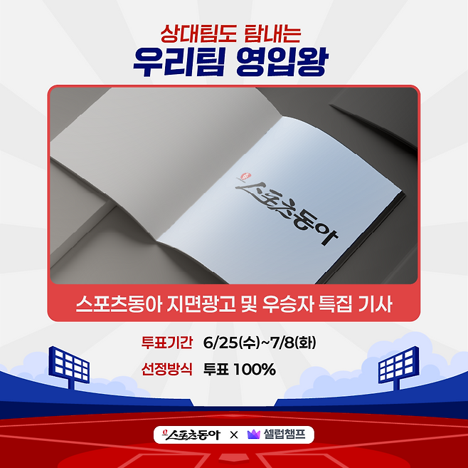 최후의 1인은 스포츠동아 전면 광고와 특집 기사의 주인공이 된다. 투표는 ‘셀럽챔프’ 앱을 통해 야구팬이라면 누구나 참여할 수 있다.