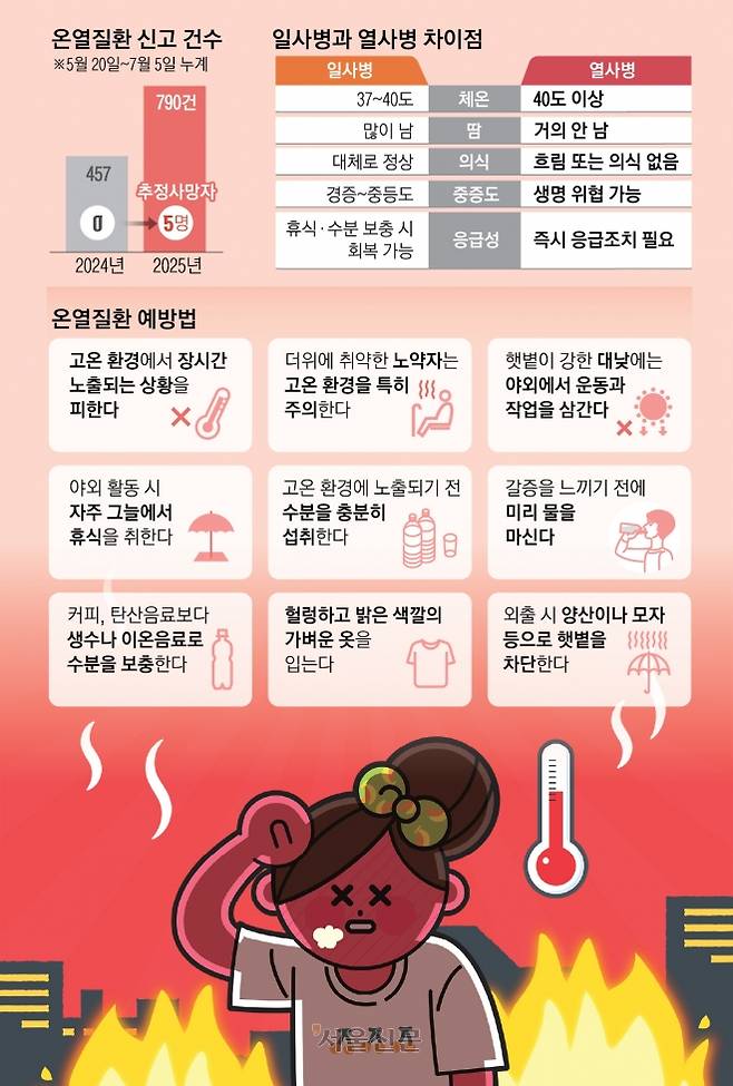 조용일 한양대병원 응급의학과 교수는 "열사병은 체온이 40도 이상 오르고 땀이 나지 않으며, 의식을 잃을 수 있는 응급질환"이라며 "중추신경계 이상, 간·신장 기능 저하, 발작 등으로 급속히 악화할 수 있다"고 경고했다.