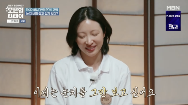 하니는 제작진과의 사전 인터뷰에서 “연예인을 너무 일찍 시작해서, 계약 기간이 끝나고 나니까 세상을 모르겠더라. 내가 우물 안 개구리였구나 싶었다”고 털어놨다. 이어 ‘오토크’ 시간에는 “제가 눈치를 많이 보는 편이다. 근데 이제 그만 보고 싶다”며 “눈치 보는 게 힘든데, 그런 환경 속에 있었어야 했던 것 같다”고 고백했다.
