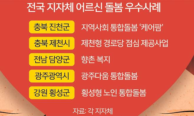 전남 담양군 ‘향촌복지’는 농촌의 지리적·사회적 특성을 반영한 복지체계로 꼽힌다. 복지관을 중심으로 노인복지, 건강관리, 여가활동 치매예방, 건강, 식생활 지원 등 서비스를 제공한다. ‘통합돌봄 행복동행’과 공중보건의가 가정을 방문하는 ‘우리마을 주치의’ 등은 어르신들에게 인기다. 치매 예방 교실과 치매 조기 검진, 대상포진 무료 예방접종 확대 등 지역형 복지를 선보인다.
