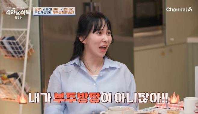 7일 방송된 채널A '절친 토큐멘터리-4인용 식탁'에서는 김지우가 김히어라, 아이키를 초대했다.