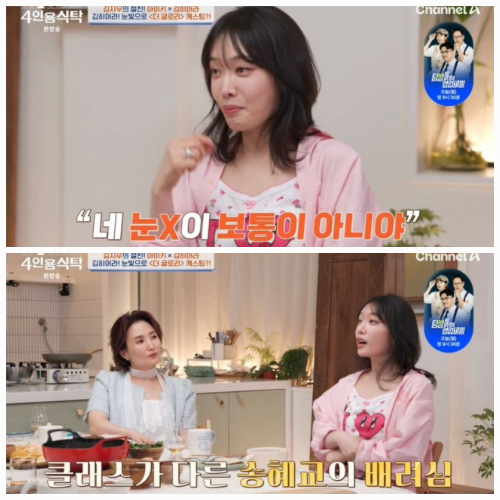 김히어라가 7일 방송된 채널A ‘4인용 식탁’에 출연해 ‘더 글로리’ 비하인드와 배우로서의 감정을 고백했다. 주연 서사 없이도 감정 중심에 서 있던 김히어라의 이야기는 의외로 ‘눈빛’에서 시작됐다고 밝혔다.