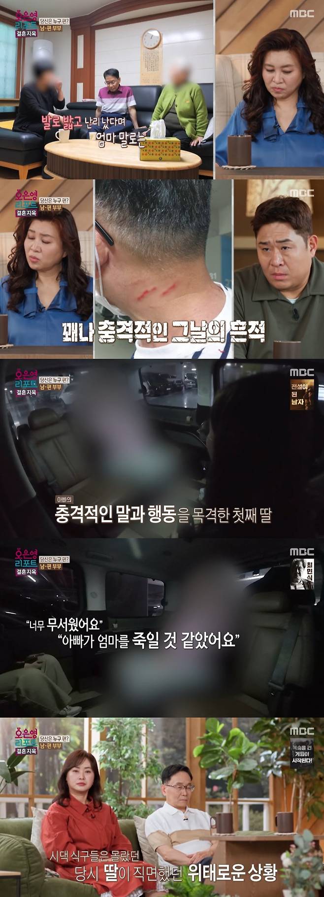 첫째 딸은 "(아빠가) '너네 엄마 말리려면 이 방법밖에 없다'고 했다. 제가 아빠를 때리면서 미쳤냐고 그랬다. 너무 무서웠다. 아빠가 엄마를 죽일 것 같았다"라고 털어놨다.
