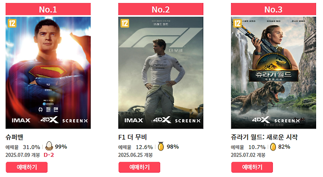 ‘슈퍼맨’ 전체 예매율 1위 굳건.. 극캉스 이끄나?