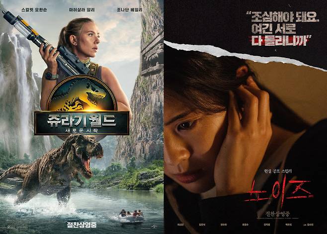 영화 '쥬라기 월드: 새로운 시작'(감독 가렛 에드워즈, '쥬라기 월드')이 6일 연속 박스오피스 1위를 기록 중인 가운데, 한국 공포 스릴러 영화 '노이즈'(감독 김수진)가 입소문과 함께 조용히 장기 흥행 중이다.