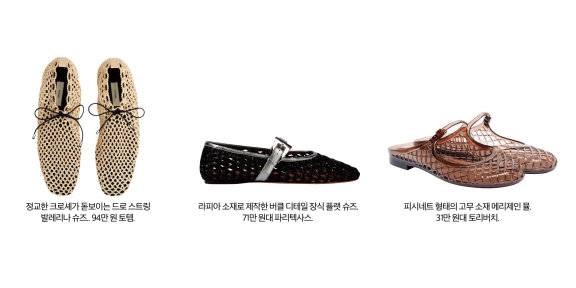 비슷비슷한 블랙 피시네트 슈즈도 그가 신으면 전혀 다르게 다가온다. 젠지들을 이끄는 패셔니스타 린다 사는 여성스러운 레이스 블라우스에 하프 데님 팬츠를 매치하고 반다나 헤어밴드와 스키니 선글라스, 라피아 백으로 산뜻하게 마무리했다. 한 손에 쥔 꽃다발마저 사랑스러운 걸리시 룩 완성.