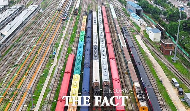 7일 서울 수색차량사업소에 대기중인 '알록달록' 기차들도 더위에 지쳐 잠시 쉬어가는 듯합니다.