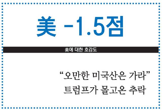 호감도 -1.5점… “오만한 미국산 OUT!” 트럼프가 몰고온 추락[Global Window]