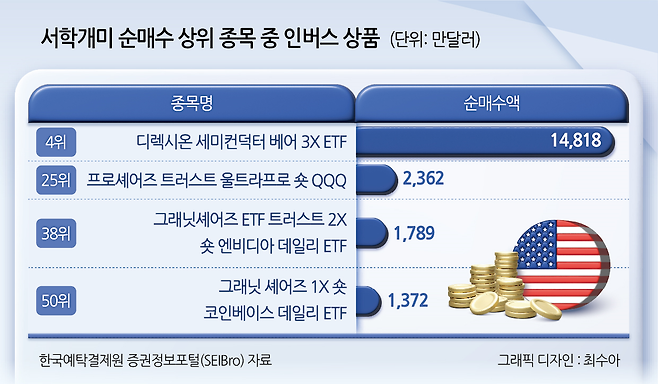 서학개미, 주가 43% 뛰는데 ‘곱버스’ 사모은다…청개구리 베팅 [투자360]