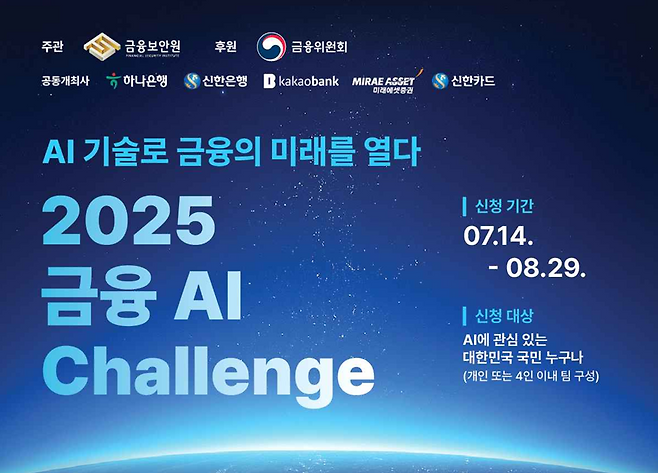 금융보안원은 전 국민을 대상으로 '2025 금융 AI Challenge(챌린지)'를 개최한다고 8일 밝혔다.