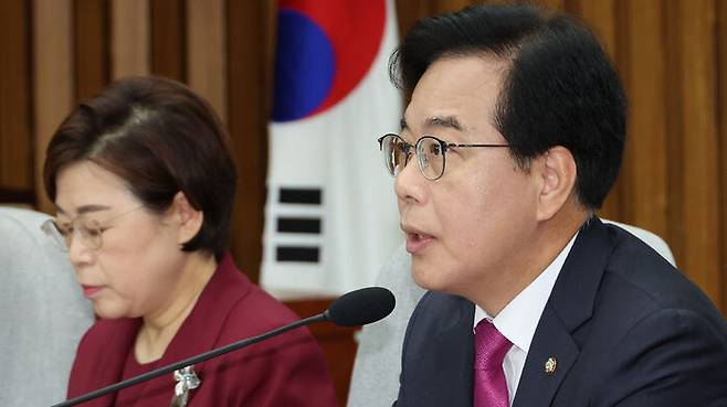 ▲ 국민의힘 송언석 비대위원장 겸 원내대표가 8일 서울 여의도 국회에서 열린 원내대책회의에서 발언하고 있다.