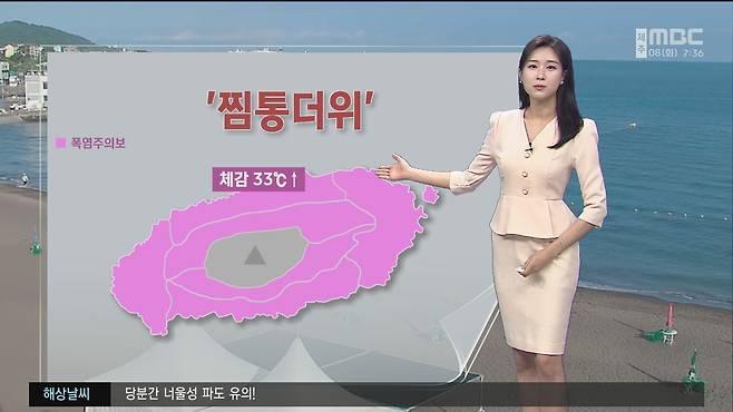현재 제주 전 지역은 폭염주의보가 내려졌는데요. 오늘 체감온도 33도 이상 올라 매우 무덥겠습니다.
