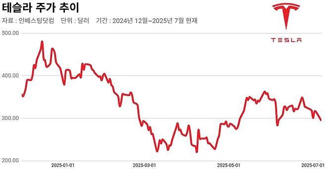 앞으로 원금 손실 사례가 더 늘어날 수 있다. 머스크 CEO가 ‘아메리카당’ 창당을 발표한 여파로 테슬라 주식은 밤사이 뉴욕증시에서 293.94달러에 거래를 마쳤다. 하루 새 6.79%(21.41달러) 하락했다. 트럼프 대통령과의 갈등이 더 심화할 수 있다는 우려가 주가를 끌어내렸다.