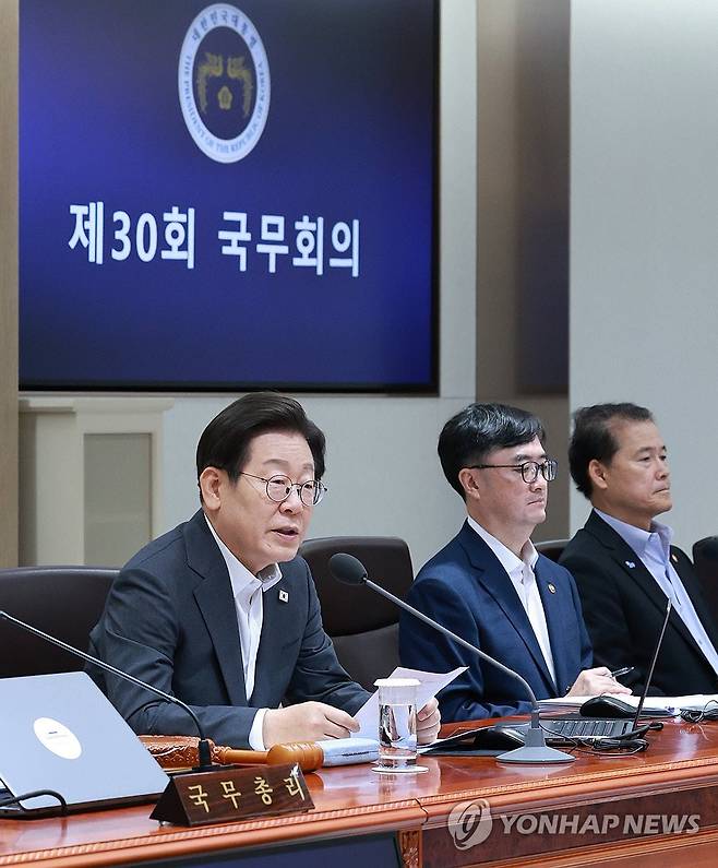 (서울=연합뉴스) 한상균 기자 = 이재명 대통령이 8일 용산 대통령실에서 국무회의를 주재하고 있다. 2025.7.8 [대통령실통신사진기자단]
