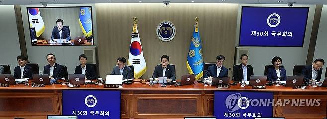 (서울=연합뉴스) 한상균 기자 = 이재명 대통령이 8일 용산 대통령실에서 국무회의를 주재하고 있다. 2025.7.8 [대통령실통신사진기자단]