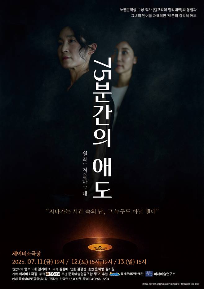 노벨문학상 수상작가 엘프리데 옐리네크의 작품세계를 바탕으로 한 연극 ‘75분간의 애도’가 11~13일 천안 제이비소극장에서 초연된다.