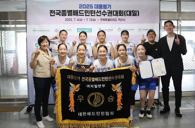 길영아 감독이 이끄는 삼성생명은 이날 전북 익산 실내체육관에서 열린 2025 대통령기 전국종별배드민턴선수권대회 여자일반부 단체전 결승에서 화순군청을 종합전적 3-0으로 물리쳤습니다.