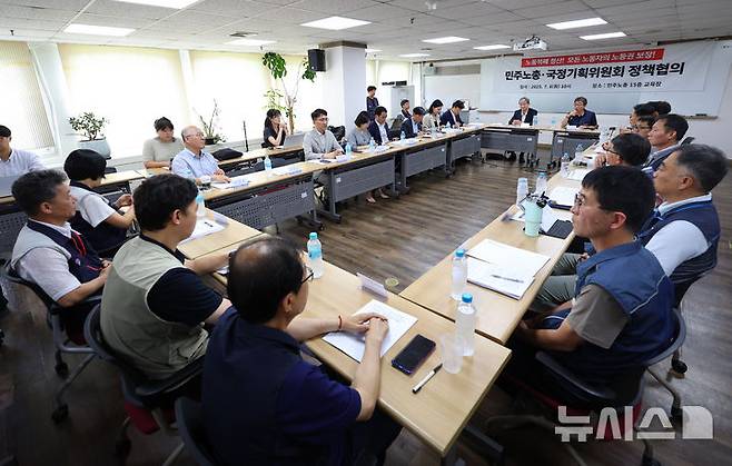 [서울=뉴시스] 최진석 기자 = 8일 서울 중구 정동 민주노총 교육장에서 민주노총·국정기획위원회 정책협의가 열리고 있다. 2025.07.08. myjs@newsis.com