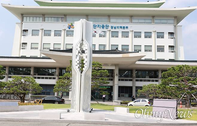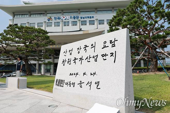 | ▲ 창원 소재 한국산업단지공단 경남지역본부. 사진에서 오른쪽 아래에 윤석열 전 대통령 친필 표지석이 있다. |