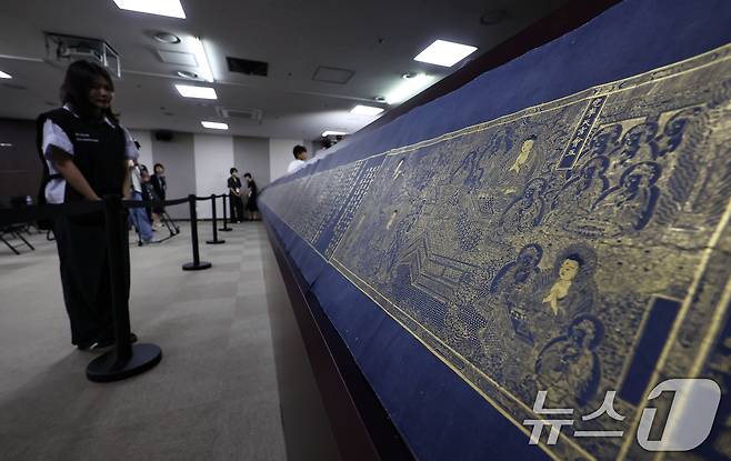 '감지금니 대방광불화엄경 주본 권22'와 '시왕도'는 국가유산청과 국외소재문화유산재단이 일본에서 환수한 문화재로 수백 년의 시간이 지나도 보존 상태가 양호해 향후 다양한 연구와 전시 등에 활용될 것으로 기대된다. 2025.7.8/뉴스1