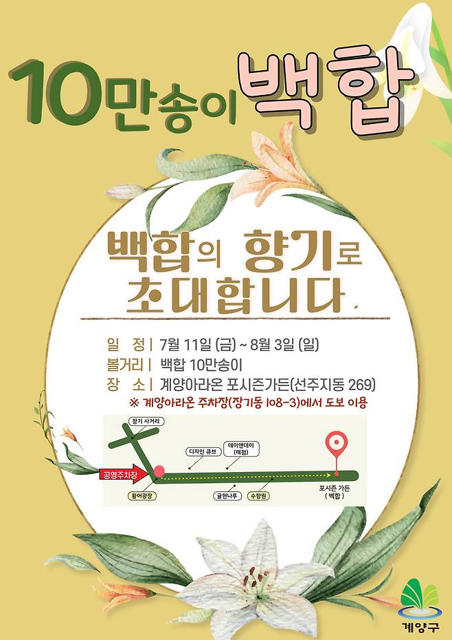 구 관계자는 "무더운 여름날 백합이 가득한 포시즌가든에서 시민들이 꽃향기와 함께 일상의 여유를 느끼길 바란다"며 "앞으로도 사계절 꽃이 있는 관광도시 계양을 만들어가겠다"고 말했다.
