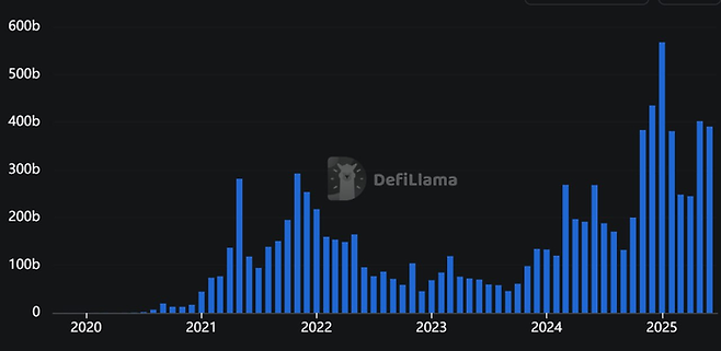8일 디파이라마에 따르면 지난 6월 전체 탈중앙화거래소(DEX)의 거래대금은 3907억달러로 집계됐다.