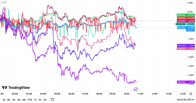 대부분의 코인들은 크게 영향을 받지 않은 모습이다.