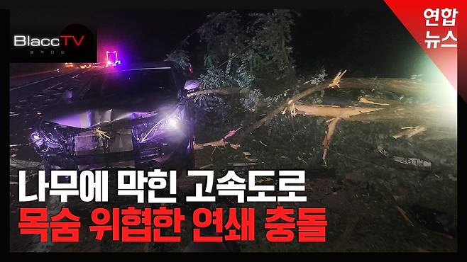 (서울=연합뉴스) 고속도로에 쓰러진 나무 때문에 차량 6대가 연쇄 충돌하는 사고가 발생했습니다.