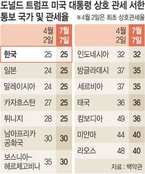 한·일 모두에 25%… 차·철강·알루미늄 품목관세는 별도