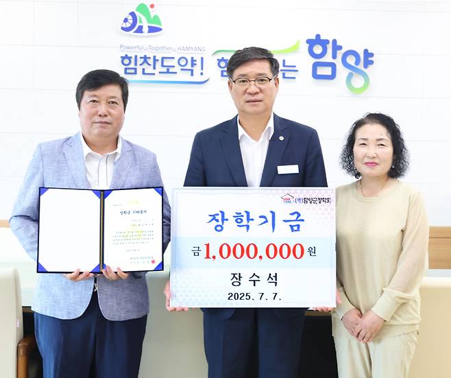 장수석(61·전 함양경찰서 정보보안과장) 전 함양군파크골프협회 사무국장이 지역 인재 육성을 위해 장학금 100만원을 (재)함양군장학회에 기탁했다.