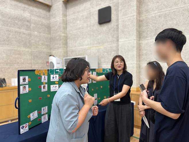 | ▲ 올바른 연애관 확립을 위한 '마음사용설명서' 부스에 청년들이 참여하고 있다. |