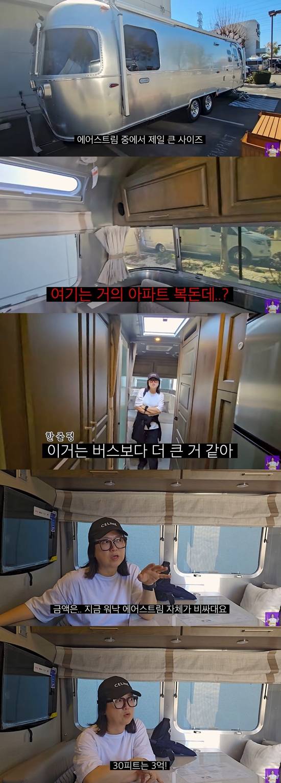 캠핑카 투어를 마친 김숙은 "LA에서 에어스트림 travel trailer를 보러 왔다. 규모 자체가 다르고 확실히 고를 수 있는 (캠핑카가) 너무 많은 것 같다. 지금 워낙 에어스트림 자체가 비싸다고 한다. 최소가 8~9천, 3억, 2억이다. 못 산다"라며 후기를 남겼다.