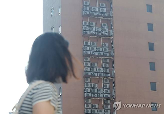 (서울=연합뉴스) 류영석 기자 = 계속되는 폭염으로 최대 전력 수요가 한여름 수준으로 치솟는 가운데 8일 서울 시내 한 건물에 에어컨 실외기들이 다닥다닥 붙어 있다.