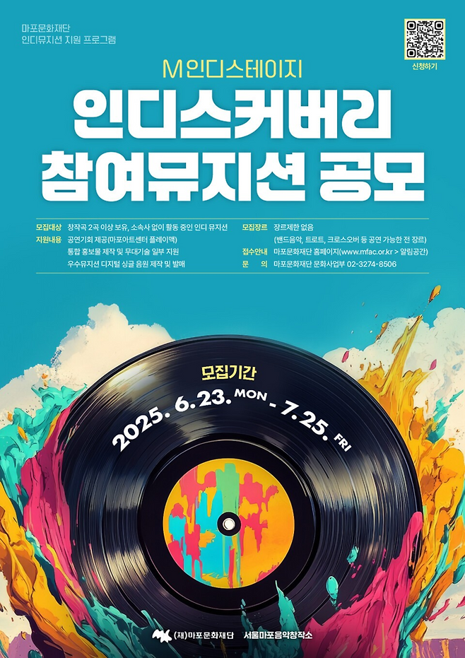 마포문화재단(대표이사 고영근)이 인디뮤지션들에게 공연무대와 음원 제작 기회를 제공하는 인디뮤지션 지원 프로그램을 공개모집합니다.