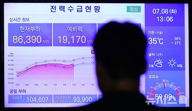 전력거래소에 따르면 이른 폭염 영향으로 전날 최대전력 수요가 지난해 보다 2주 가량 빠르게 한여름 수준인 90.2GW(기가와트)를 넘겼다. 2025.07.08. hwang@newsis.com