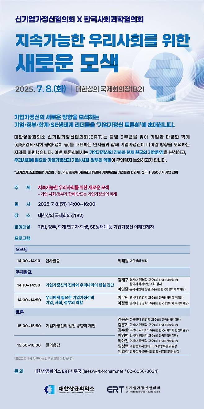 대한상공회의소 신기업가정신협의회가 8일 한국사회과학협의회와 공동으로 '지속가능한 우리 사회를 위한 새로운 모색'을 주제로 토론회를 개최했다.