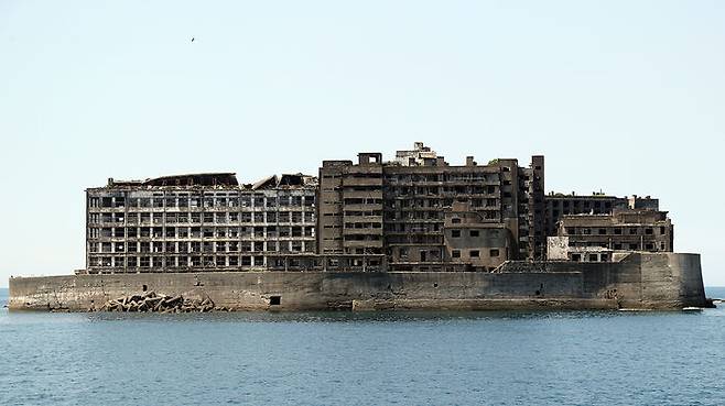 ▲ 일본 나가사키현 하시마(일명 '군함도') 인근 해상의 유람선에서 보이는 군함도