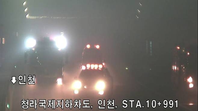 ▲ 연기 가득찬 청라국제지하차도